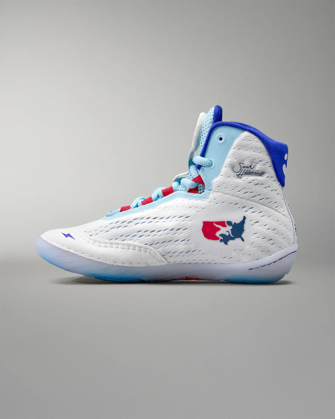 Der erste Signature-Ringerschuh einer Weltklasse-Ringerin: Der Rudis Hildebrandt wurde mit Sarah Hildebrandt entwickelt und vereint feminine Passform mit funktionalem High-Performance-Design – leicht, stützend und auf schnelle Bewegungen ausgelegt.